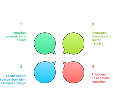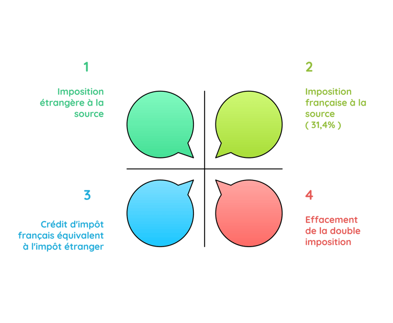 Soyez vigilants si vous achetez des actions étrangères qui vous versent des dividendes. Ils seront d'abord imposés à l'étranger puis ils seront soumis à au prélèvement forfaitaire non libératoire de l'impôt sur le revenu (12,8%) ainsi qu'aux prélèvements sociaux, ce qui occasionne une double imposition. Vous recevrez par la suite un crédit d'impôt pour compenser en fonction des conventions fiscales applicables entre la France et le pays concerné.