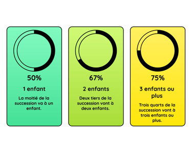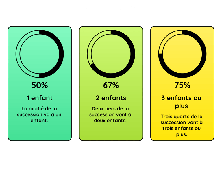 Le droit des enfants : Ils se partagent les trois quarts (3/4) restants en pleine propriété.