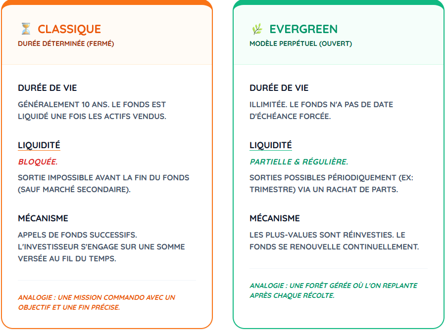 Quoiqu'il en soit, les fonds Evergreen apportent plus de souplesse et offrent une meilleure visibilité à l'investisseur.