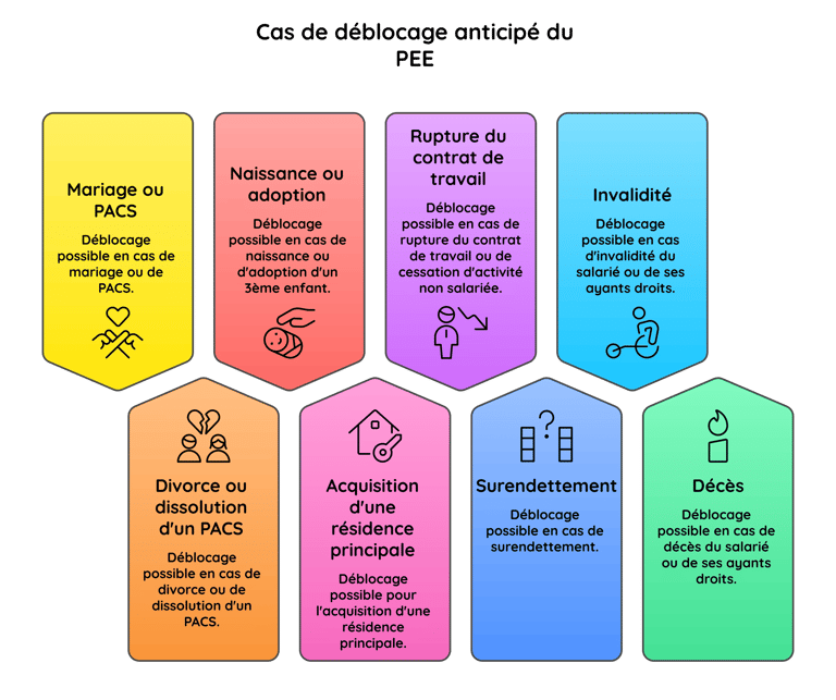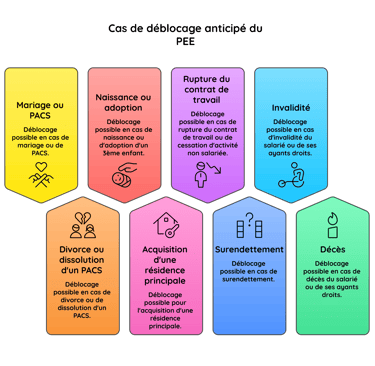 Les versements réalisés sur le plan (quelque soit leur provenance) seront bloqués pendant 5 ans sauf cas de déblocage anticipé.