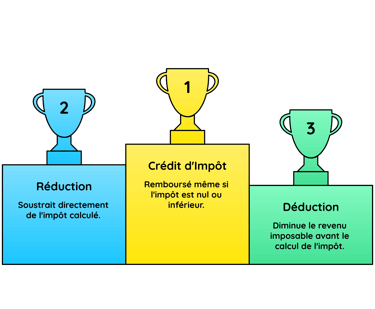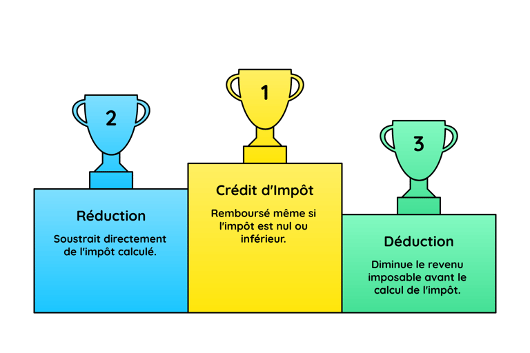 Plusieurs mécanismes peuvent réduire le montant de votre impôt final, il est important de les comprendre et de les distinguer.